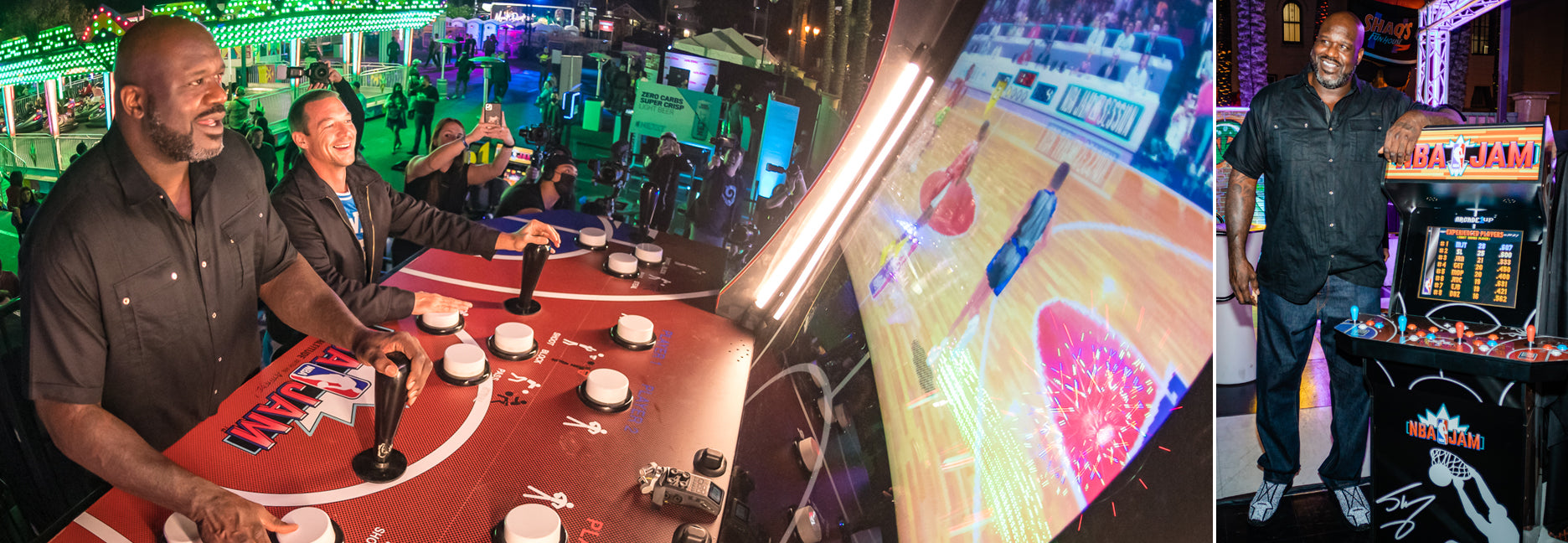 The home arcade machine, at a Shaq-sized 67”, has a 19" screen, WiFi, and will be released this summer. Shaq unveiled the machine at Shaq’s Fun House, his annual pre-Super Bowl event where he challenged Diplo for a face-off game on our 16-foot NBA JAM machine. Guess who won...